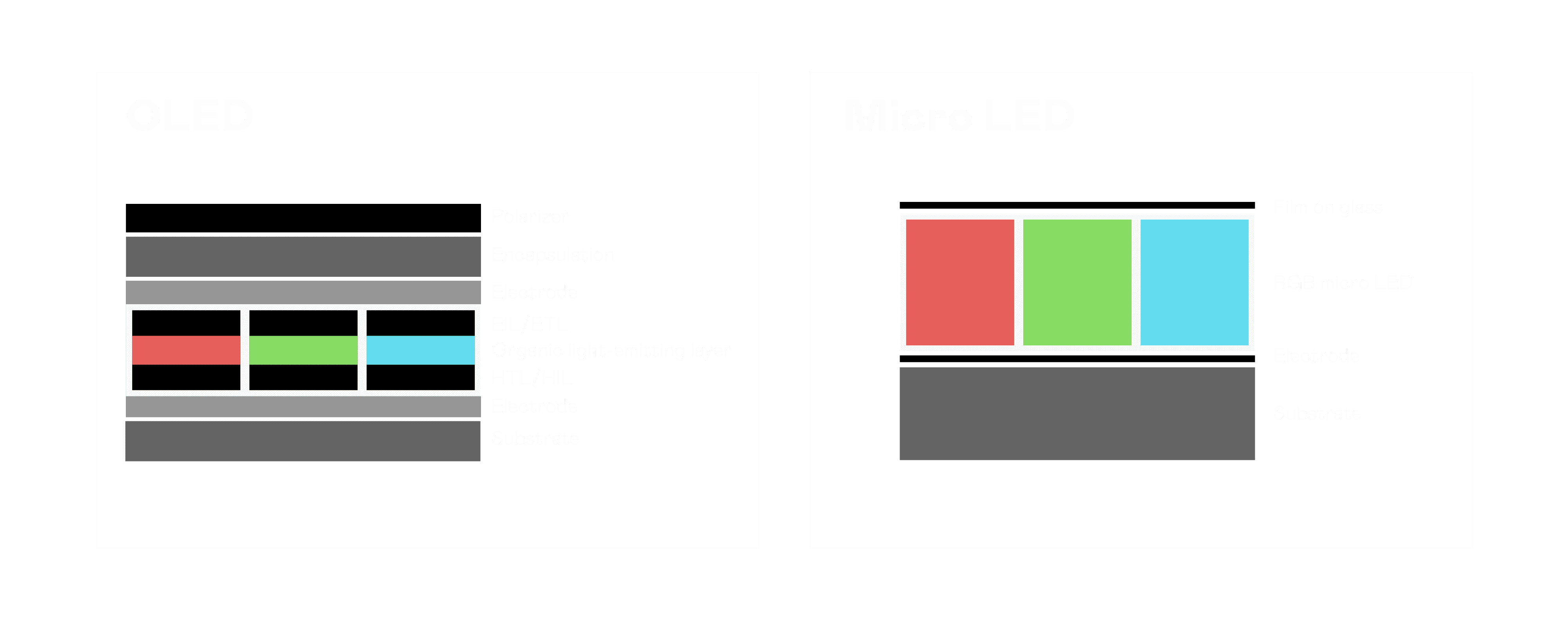 以 LED 做为显示画素,,可让 LED 的发光效率发挥到极致,,,,从而让显示器具备优异的亮度表现,,,不论是在户外或室内,,均具备出众的显示效果。。同时,,,与使用有机材料的 OLED 相比,,,LED 具备更稳定、、寿命更长的特性,,不仅不会有画面烙印问题,,,而且更不容易出现故障、、坏点。。。