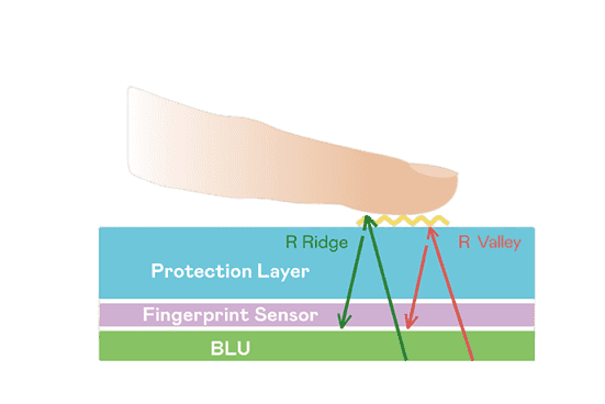TFT 指纹扫描感测技术利用薄膜电晶体 (TFT) 当作光感测元件,,,藉由非晶硅 (a-Si) 与低温多晶硅(LTPS)既有光电转换特性对不同波段光源进行吸收,,使感测 IC 读取阵列感测元件的光漏电差异,,,转换成数位灰阶影像。。。